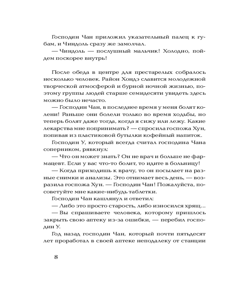 Брала в подарок, но прежде чем подарить прочитала сама. Книга оставила после себя ощущение лёгкости и веры в лучшее. Это было первое знакомство с корейской литературой.