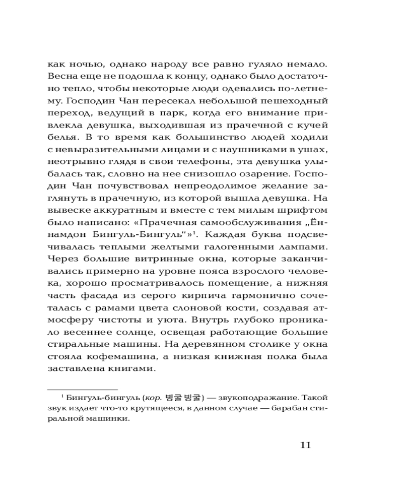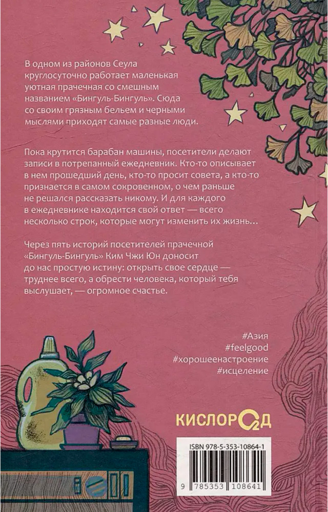 💳 Оплатить за товар можно при получении 🇰🇿 Есть бесплатная доставка по Казахстану 🎁 Копите бонусы с каждой покупки Легкая и жизнеутверждающая современная проза в жанре feel good (книга хорошего настроения). Самый ожидаемый роман-исцеление 2023 года в Корее! Книга написана в лучших традициях бестселлера «Книжная кухня» и понравится поклонникам young adult и азиатской литературы. В Сеуле, в районе Ённамдон, круглосуточно работает маленькая уютная прачечная со смешным названием «Бингуль-Бингуль». Сюда со своим грязным бельем и черными мыслями приходят разные люди и, пока крутится барабан машины, делают записи в потрепанном ежедневнике в зеленой обложке. Кто-то описывает свой прошедший день, кто-то просит совета, а кто-то признается в самом сокровенном, о чем до этого не решался рассказать никому. И для каждого в ежедневнике находится свой ответ, который может изменить их жизнь... |