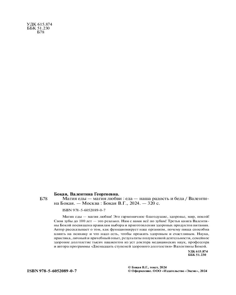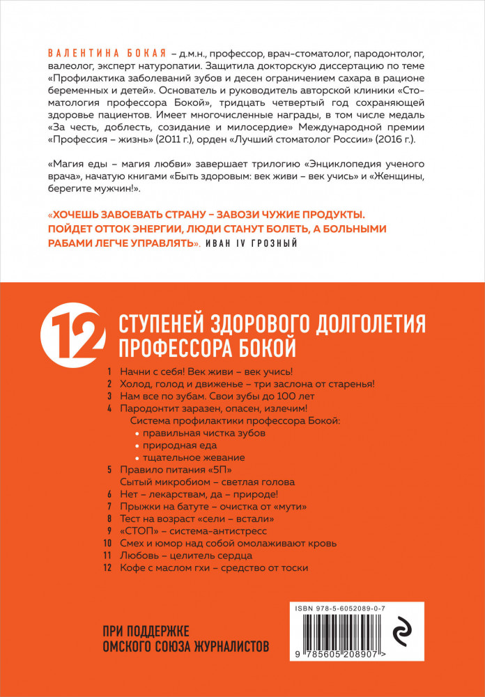 Магия еды – магия любви. Еда – наша радость и бедаВ данный момент этот товар отсутствует в продаже. Возможно, у нас найдется аналогичный или похожий товар здесь. Серия: Долго и счастливо. Научные исследования о продлении жизни и сохранении молодости Новая книга ученого, врача и новатора в области медицины — Валентины Бокой — рассказывает о влиянии питания на физическое и ментальное здоровье человека. Из книги вы узнаете о том, чем нам могут грозить популярные продукты «здорового» рациона и как правильно их выбирать. Какая связь существует между психоэмоциональным состоянием человека и его питанием. Как получать все необходимые витамины и микроэлементы и при этом не травить свое тело гормонами и тяжелыми металлами. |