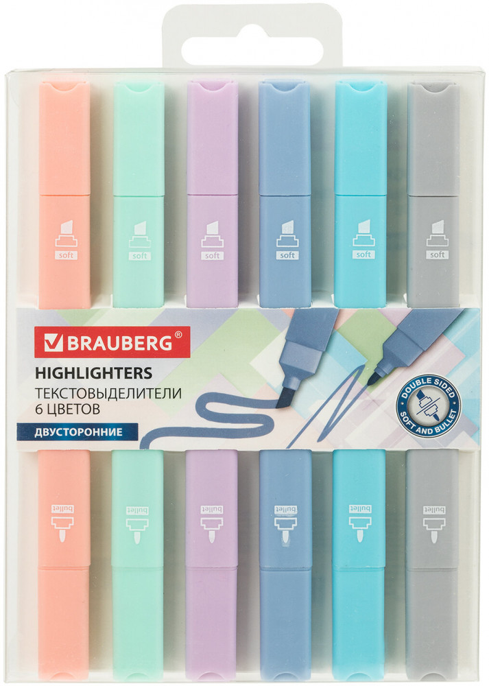 Brauberg Набор текстовыделителей «Macaroon»-25% +28 пастельные цвета нежные цвета спокойные цвета красивые оттенки