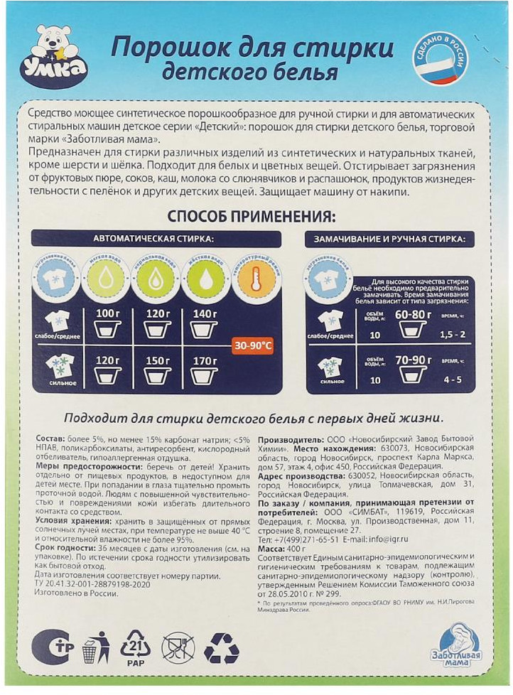 Заботливая мама Порошок для стирки детского белья «Умка»