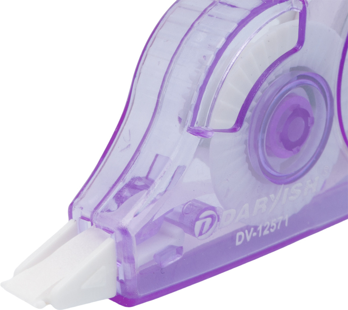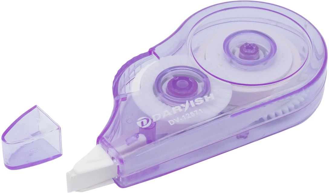 Корректирующая лента — незаменимый инструмент для тех, кто заботится о безупречном виде документов. Лента располагается в компактном и креативном пластиковом контейнере Фрукты, эргономичный дизайн которого обеспечивает удобный хват. Внутри корпуса находится специальный сухой состав в виде тонкой ленты. При нажатии на корпус лентопротяжный механизм подает ленту на рабочий узел. Ролик, выполненный из пластика, обеспечивает плавное, непрерывное движение ленты. Во избежание засыхания ленты всегда закрывайте колпачок после использования.