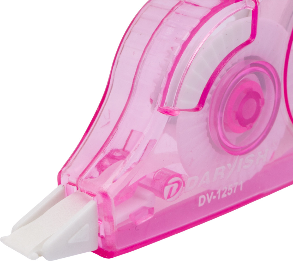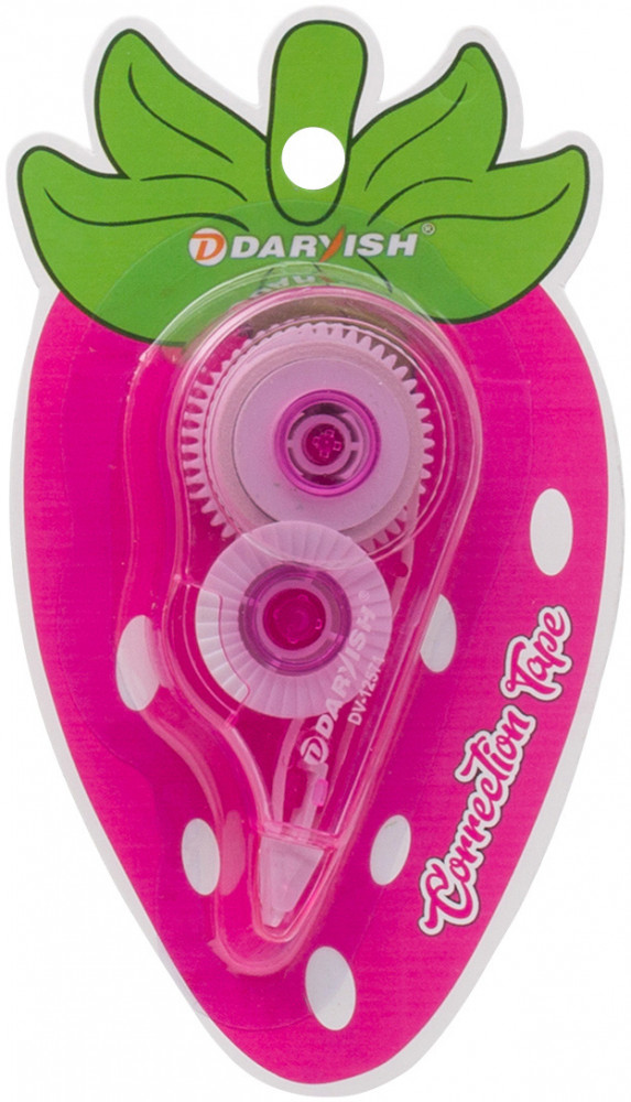 Корректирующая лента — незаменимый инструмент для тех, кто заботится о безупречном виде документов. Лента располагается в компактном и креативном пластиковом контейнере Фрукты, эргономичный дизайн которого обеспечивает удобный хват. Внутри корпуса находится специальный сухой состав в виде тонкой ленты. При нажатии на корпус лентопротяжный механизм подает ленту на рабочий узел. Ролик, выполненный из пластика, обеспечивает плавное, непрерывное движение ленты. Во избежание засыхания ленты всегда закрывайте колпачок после использования.