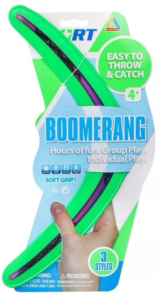 Наша игрушка БумерангВ данный момент этот товар отсутствует в продаже. Возможно, у нас найдется аналогичный или похожий товар здесь. Бумеранг — это снаряд, предназначенный для захватывающей игры в фрисби на свежем воздухе. Смысл этого развлечения заключается в том, чтобы бросать на определённые расстояния предмет и ловить его. Игра развивает ловкость, меткость, внимание и скорость реакции. Игрушка имеет прорезиненный корпус. |