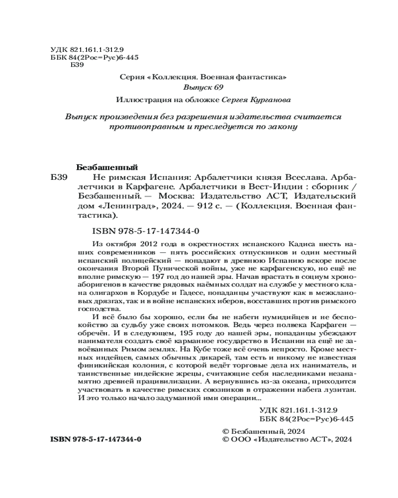 💳 Оплатить за товар можно при получении 🇰🇿 Есть бесплатная доставка по Казахстану от 1 дня 🎁 Копите бонусы с каждой покупки Серия: Коллекция. Военная фантастика Из октября 2012 года в окрестностях испанского Кадиса шесть наших современников — пять российских отпускников и один местный испанский полицейский — попадают в древнюю Испанию вскоре после окончания Второй Пунической войны, уже не карфагенскую, но ещё не вполне римскую — 197 год до нашей эры. Начав врастать в социум хроноаборигенов в качестве рядовых наёмных солдат на службе у местного клана олигархов в Кордубе и Гадесе, попаданцы участвуют как в межклановых дрязгах, так и в войне испанских иберов, восставших против римского господства. |