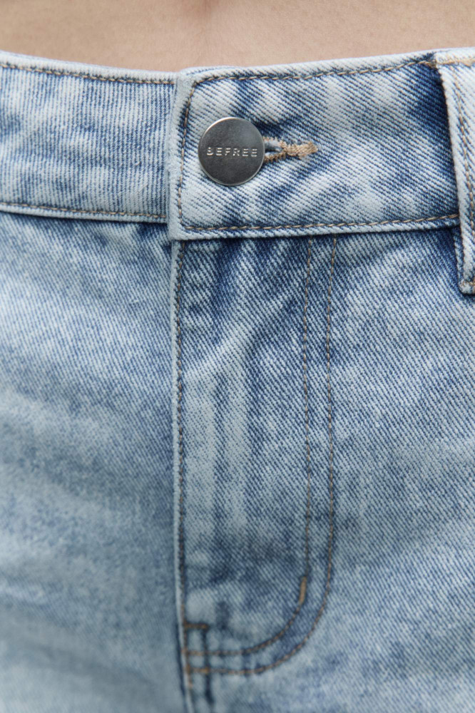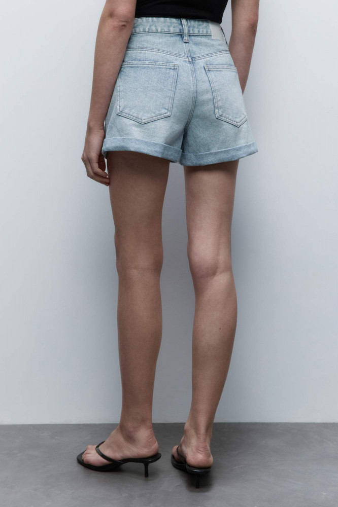 Короткие джинсовые шорты mom fit из легкого, дышащего и очень приятного к телу хлопкового денима с вискозой . Высокая посадка по талии, выгодно подчеркивающая фигуру и скрывающая недостатки. Короткие свободные штанины с закрепленными подворотами. Застежка на молнию и пуговицу спереди, шлевки для ремня. Два боковых кармана с отрезным бочком, два накладных кармана сзади, кармашек для мелочи. Металлические заклепки на карманах спереди. Голубые / черные / синие джинсовые шорты с вареным эффектом.