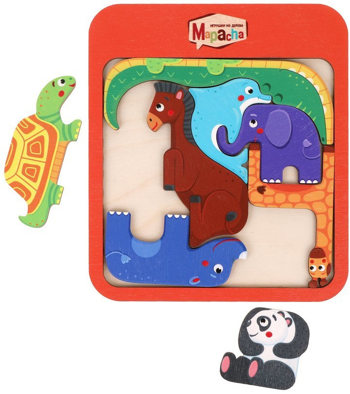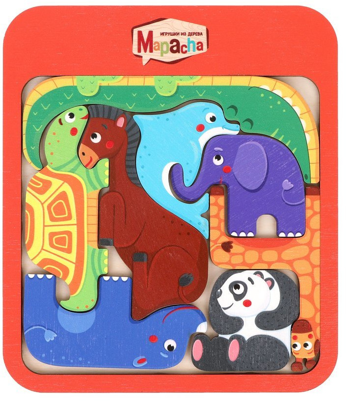 Головоломка «Веселый зоопарк» создана для того, чтобы помочь малышу развивать внимание, логику, мелкую моторику, креативное и пространственное мышление. На каждой фигурке есть изображение животного. Задача малыша — собрать пазл-головоломку так, чтобы все животные уместились в рамке.