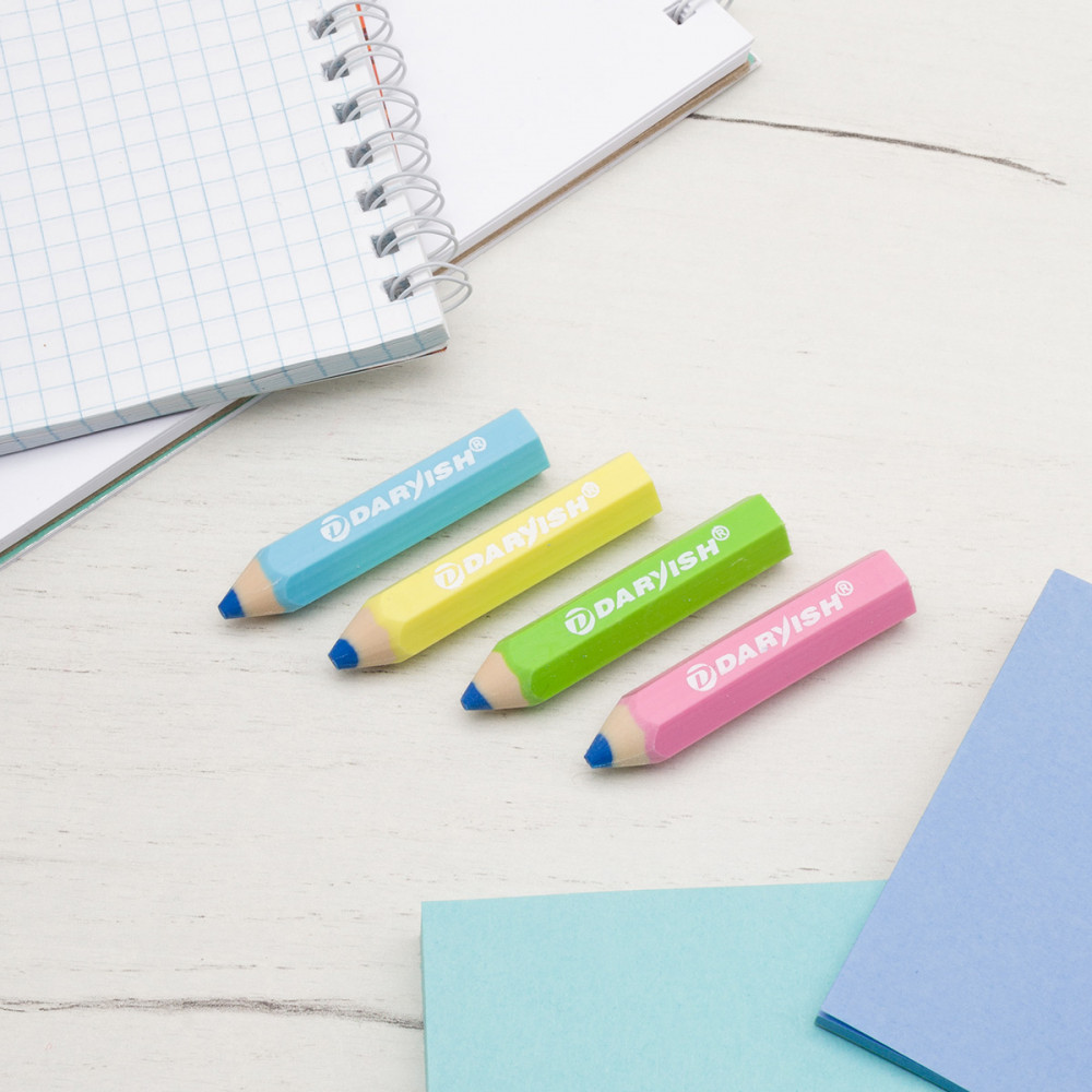 Каждый ластик точно имитирует дизайн настоящего карандаша: от ярких цветов до деталей, таких как резинка и надпись с названием. Этот детальный дизайн делает каждый ластик похожим на маленький художественный шедевр.