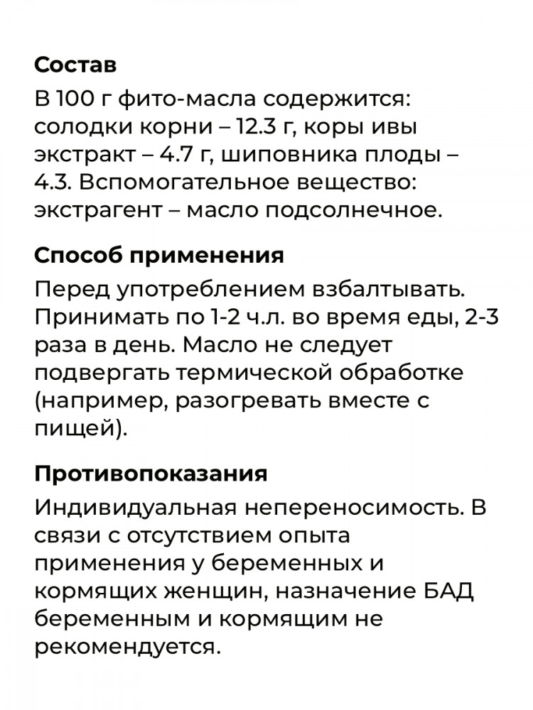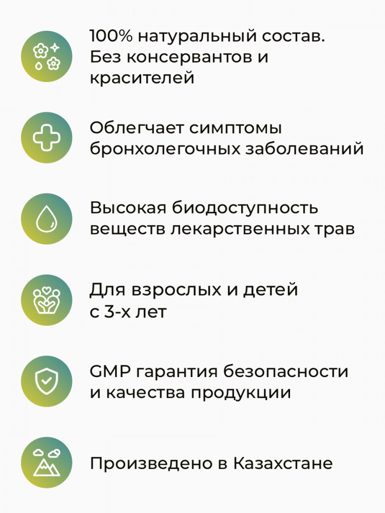 💳 Оплатить за товар можно при получении 🇰🇿 Есть бесплатная доставка по Казахстану от 1 дня 🎁 Копите бонусы с каждой покупки Фито-масло «Бронхо» — муколитическое и отхаркивающее средство растительного происхождения для облегчения симптомов бронхолегочных заболеваний (острый и хронический бронхит, пневмония, хроническая обструктивная болезнь легких, бронхиальная астма). Уникальная формула представляет собой 100% натуральный экстракт из 3 видов целебных растений: корень солодки, кора ивы и плоды шиповника. Щадящая технология без использования консервантов и красителей позволяет извлекать и сохранять биологически активные компоненты растений, и обеспечивать: муколитическое, отхаркивающее, антибактериальное, противовоспалительное и общетонизирующее действие. |
