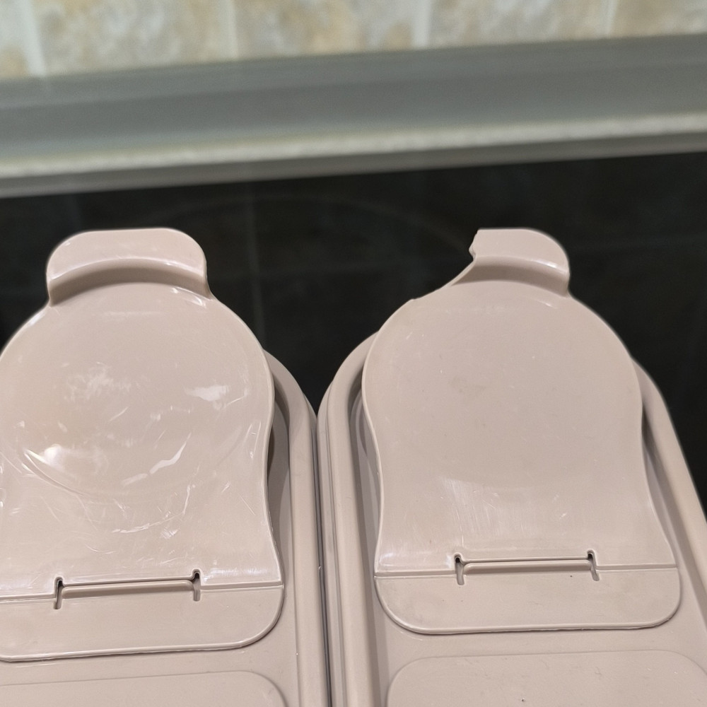 Не посмотрела в пункте выдачи, у одной емкости отломан край крышки. Не приятно((