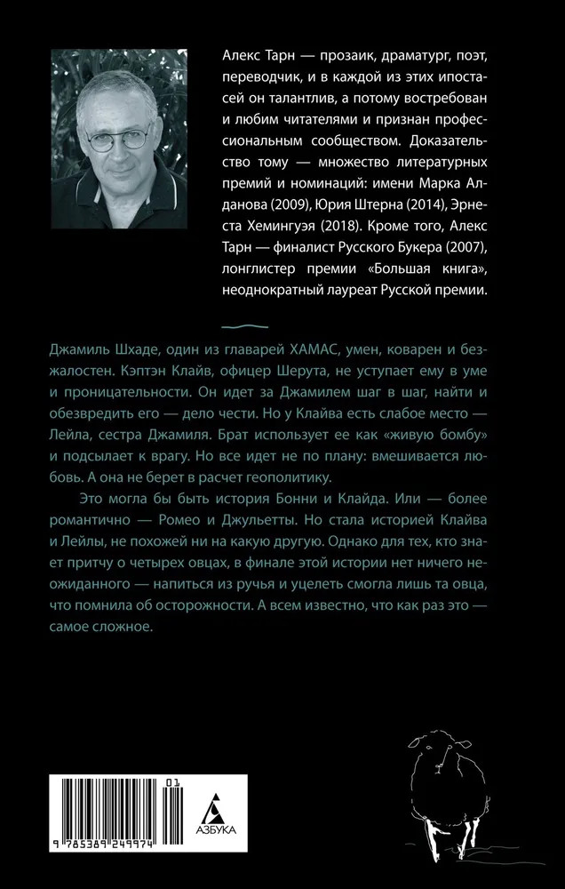 💳 Оплатить за товар можно при получении 🇰🇿 Есть бесплатная доставка по Казахстану 🎁 Копите бонусы с каждой покупки Увлекательный саспенс и интереснейшие философские размышления, эпический размах и пристальное внимание к судьбе каждого героя, живые, остроумные диалоги и неповторимая авторская интонация — все это вы найдете в романе Алекса Тарна «Четыре овцы у ручья». Джамиль Шхаде, один из главарей Хамас, умен, коварен и безжалостен. Кэптэн Клайв, офицер Шерута, не уступает ему в уме и проницательности. Он идет за Джамилем шаг в шаг, найти и обезвредить его — дело чести. Но у Клайва есть слабое место — Лейла, сестра Джамиля. Брат использует ее как «живую бомбу» и подсылает к врагу. Но все идет не по плану: вмешивается любовь. А она, как известно, не берет в расчет геополитику. |