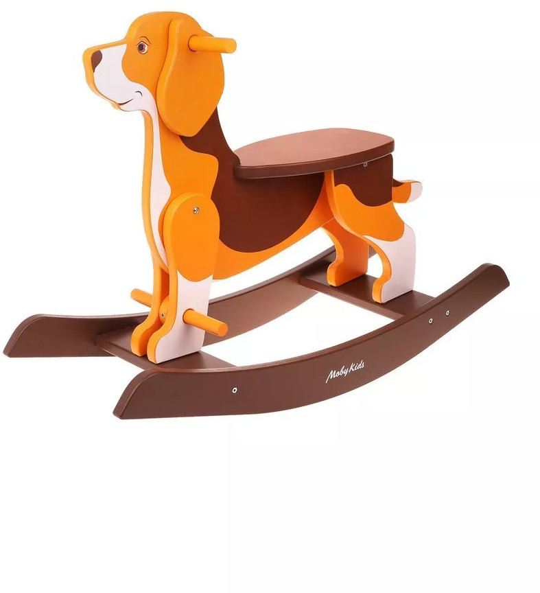 Дизайн качалки «Бигль» ТМ Moby Kids подойдет как для мальчиков, так и для девочек. Качаться на качалке — это не только очень весело, но и полезно для развития координации движений у малыша. В конструкции качалки продумано все для безопасного использования и максимального комфорта катающегося. Ребенок садится на сиденье, держится обеими руками за ручки качалки, а ноги ставит на подножки. У качалки гладкая поверхность — каждая ее деталь тщательно отшлифована. Водостойкое покрытие позволяет легко очистить изделие от загрязнений, в чем заключается его несомненное преимущество перед мягкими качалками. Данная модель подойдет на вырост: пока ребенок маленький, он может ставить ноги на специальные подножки. А когда малыш подрастет, ноги можно будет ставить уже на перекладины. Игрушка предназначена для домашнего использования.