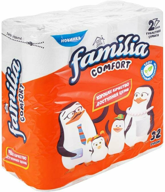Familia Туалетная бумага «Comfort»+196 мягкая много рулонов объёмная упаковка слои не делятся тонкая