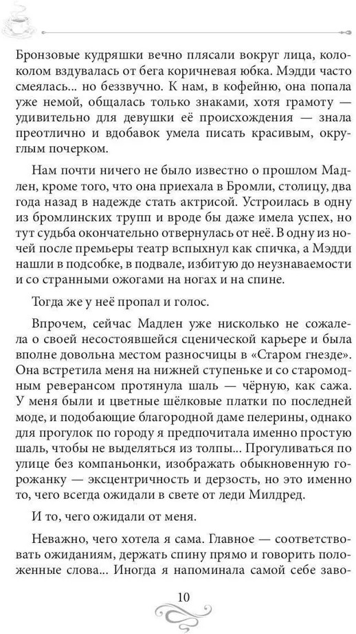 💳 Оплатить за товар можно при получении 🇰🇿 Есть бесплатная доставка по Казахстану от 1 дня 🎁 Копите бонусы с каждой покупки Серия: Кофейные истории Добро пожаловать в Великую Аксонскую Империю! Здесь по улицам славного города Бромли ещё раскатывают кебы и омнибусы, но под землей уже шумит метро. Здесь в переулке можно встретить бродячую гадалку — или благородную графиню, а если отвернётся удача — получить ножом в бок. Здесь проходит рубеж веков и за эпохой лошадей наступает век паровозов, а следом уже спешат, подгоняя прогресс нетерпеливыми гудками, первые электромобили. А в сердце города гостеприимно распахнула двери самая желанная кофейня столицы — «Старое гнездо», только вот хозяйке сейчас не до светских развлечений. |