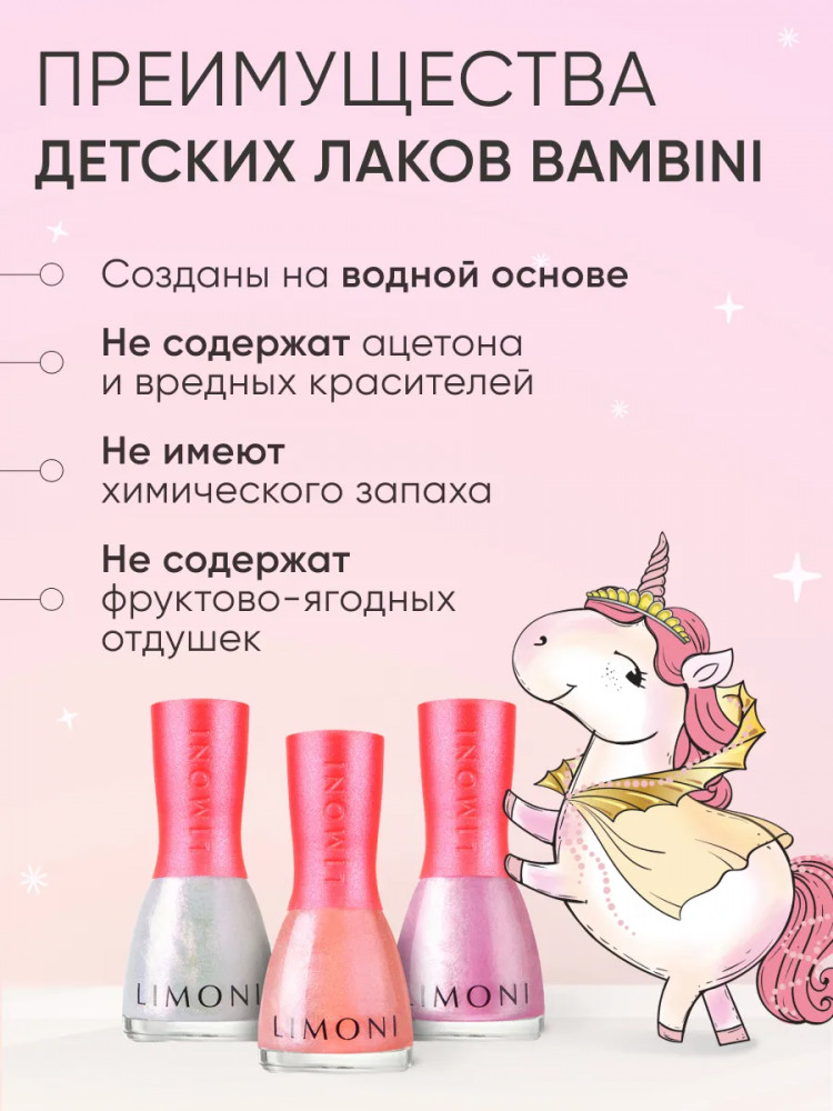 Стильный маникюр для маленькой принцессы без вреда для здоровья — не сказка! Маленькие модницы мечтают быть похожими на своих мам. Поэтому флакончики в точности повторяют дизайн «взрослых» лаков для ногтей. Благодаря тому, что лак легко смывается водой, можно перекрашивать ногти столько раз, сколько пожелает маленькая принцесса. Вам понадобится буквально пара минут, чтобы безопасно сменить образ. Радости и восторгу юной леди не будет предела. Меняйте цвет по настроению, под цвет наряда, под цвет бантиков или любимой игрушки. Ваша красавица будет всегда в центре внимания — будь то праздник, прогулка или обычный день в саду. Средство держится до тех пор, пока девочка не решит его смыть.