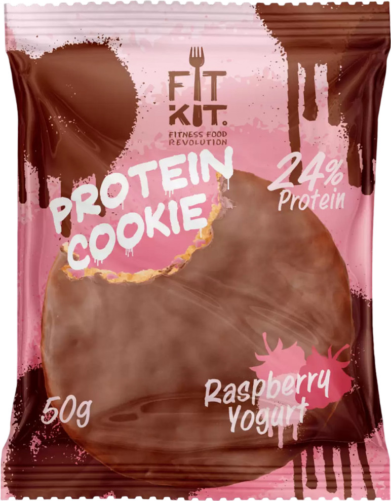 FitKit Десерт глазированный со вкусом малинового йогурта «FK Protein chocolate сookie»
