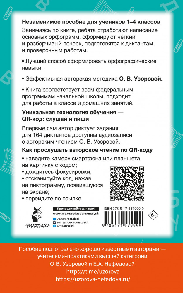 Диктанты по русскому языку с QR-аудио. 1-4 классы. QR-код: слушай и пишиОльга Васильевна Узорова, Елена Алексеевна Нефедова -20% +18