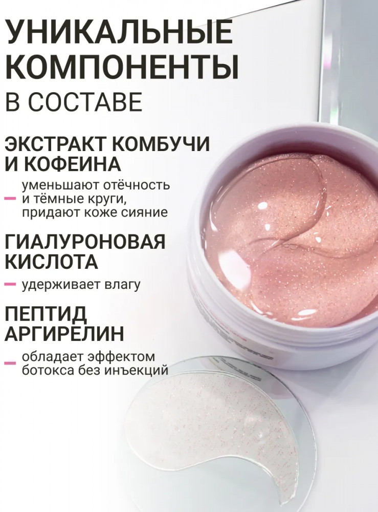 💳 Оплатить за товар можно при получении 🇰🇿 Есть бесплатная доставка по Казахстану от 1 дня 🎁 Копите бонусы с каждой покупки Разглаживающие лифтинг-патчи придают коже упругость и выравнивают микрорельеф, создавая ощущение гладкости и мягкости. Комплекс полисахаридов и пептида ARGILERINE придают коже подтянутость, а гиалуроновая кислота и коллаген в составе надолго обеспечивают увлажнённость кожи. Экстракты комбучи, гамамелиса и кофеина мгновенно тонизируют кожу, уменьшают отёчность и тёмные круги, придают коже естественное сияние. |