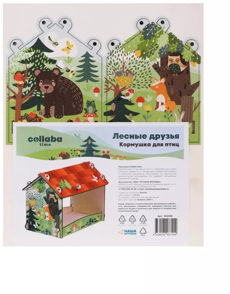 Хотите сделать домик для птиц своими руками? В этом вам поможет кормушка для птиц ТМ Collaba time «Лесные друзья». Детали кормушки выполнены из фанеры. Кормушка собирается как конструктор. Перед началом сборки нужно аккуратно выдавить детали из листов фанеры. Кормушка прекрасно подойдет для маленьких птиц. Размер компактной кормушки в собранном виде: 20 × 12 × 15 см.