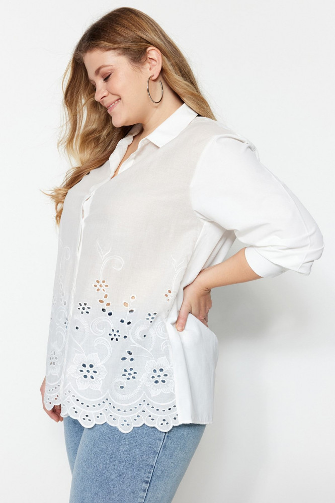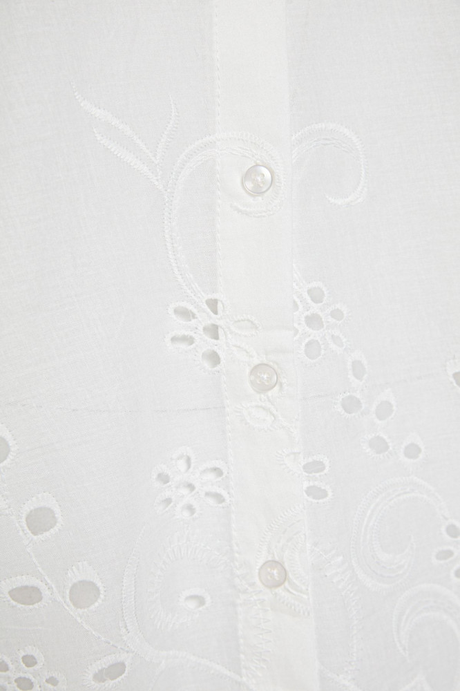 Приятная рубашка, размер соответствует. цвет натуральный белый, мне очень нравится. Тонкий хлопок.