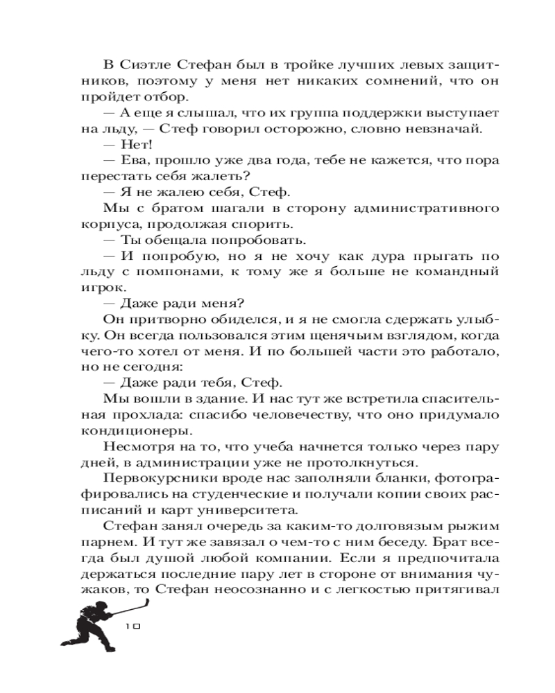 💳 Оплатить за товар можно при получении 🇰🇿 Есть бесплатная доставка по Казахстану от 1 дня 🎁 Копите бонусы с каждой покупки Серия: Спортивные романы Холли Брикс и др. Ева Саммерс дала себе строгое обещание: больше никаких парней, которые влюблены в лёд так же, как и она сама. Но вся её решимость рушится, когда она встречает Микаэля Фостера — капитана студенческой хоккейной команды. К тому же только с его помощью она сможет осуществить свою мечту и снова вернуться на лёд. |