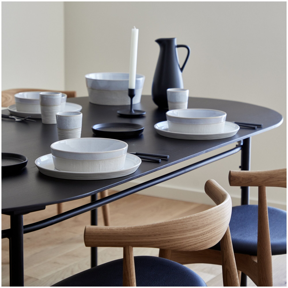 После полного застывания над посудой Notos начали «колдовать» художники по керамике. С помощью особой техники смешивания разных оттенков цветной глазури они смогли добиться градуированной расцветки в желтых тонах, которую назвали Dune Path. Также ряд изделий был окрашен в глубокий черный цвет. Вместе такая посуда составляет контрастный ансамбль, поразительным образом сочетающихся друг с другом элементов.
