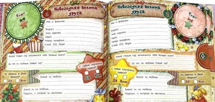 Этот Новогодний дневничок незаменим в преддверии праздников! С его помощью можно спланировать вечеринку составить оригинальное меню, смастерить необычные открытки и новогодние украшения. Анкеты для друзей, гадания, увлекательные тесты сделают зимние каникулы незабываемыми!