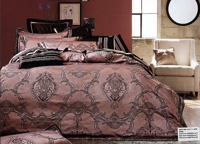 Комплект похож на фото, но все-таки другой, во-первых рисунок бледнее, не черного цвета, цвет рисунка как будто на пару тонов темнее, чем фон, цвет фона вроде соответствует. Но по краям ни пододеяльника, ни наволочек нет черных полосок, в моем комплекте вставки из вышитого сатина персикового цвета, на покрывале с одной стороны тоже такая вставка шириной примерно 50 см , то есть край покрывала, который свисает с кровати на фото будет не таким, а из сатина с вышивкой. Наверное неплохо было бы создать на сайте что-то вроде альбома, где можно было бы выкладывать настоящие фото товара, а это фото сделано с этикетки, которая пришла с комплектом.