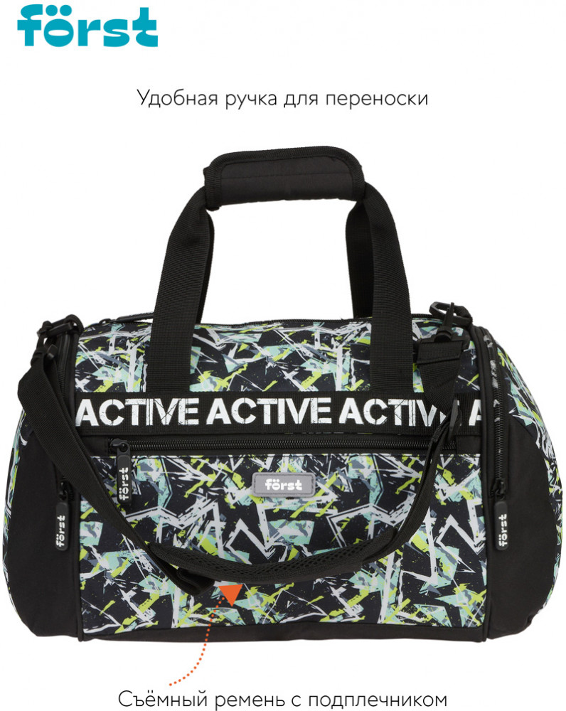 Forst Сумка спортивная «Abstract»В данный момент этот товар отсутствует в продаже. Возможно, у нас найдется аналогичный или похожий товар здесь. Серия: Abstract Сумка для спортивной одежды и обуви выполнена из прочного износостойкого материала. Она содержит одно основное отделение и три функциональных кармана на молнии: карман для обуви, боковой карман и передний карман для мелочей. Сумка оснащена удобной ручкой для переноски, а также съемным ремнем с подплечником. |