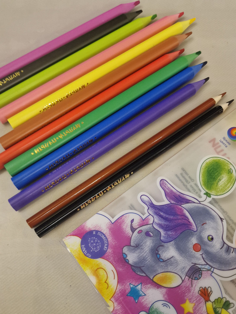 На фото рядом обычные цветные карандаши