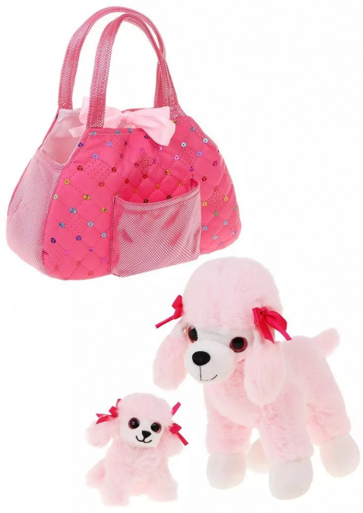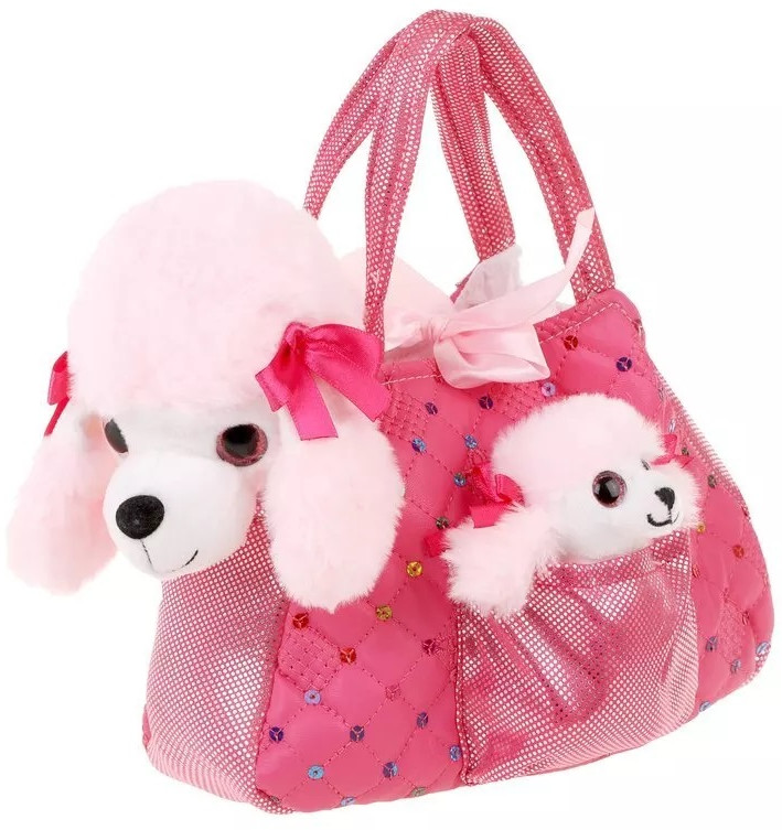 Fluffy Family Набор игровой «Мама пудель и щенок в сумке»В данный момент этот товар отсутствует в продаже. Возможно, у нас найдется аналогичный или похожий товар здесь. Очаровательный подарок для девочек, который не оставит равнодушной ни одну маленькую модницу — стильная сумочка с двумя мягкими игрушками в виде собак. Текстильная сумка выполнена в розовом цвете и расшита небольшими сверкающими пайетками. Выглядит очень эффектно! Габариты сумочки рассчитаны таким образом, чтобы внутрь помещались две мягкие игрушки: взрослая собачка располагается в основном отделении, а щенок — в небольшом внешнем кармашке. У основного отделения предусмотрены завязки в виде лент. Мягкие игрушки — собачки выполнены в одном стиле и очень друг на друга похожи. У каждой собачки есть бантики розового цвета — эти аксессуары несъемные. |