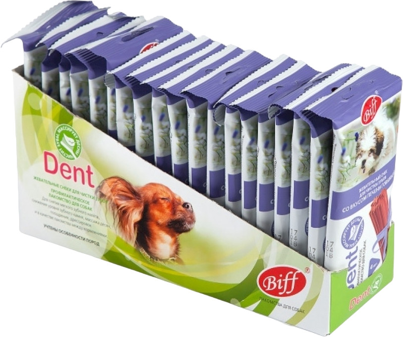 💳 Оплатить за товар можно при получении 🇰🇿 Есть бесплатная доставка по Казахстану от 1 дня 🎁 Копите бонусы с каждой покупки Серия: Dent Biff Dent жевательные снеки — это профилактическое лакомство для собак специально разработанной формы и текстуры, в котором учтены все особенности мелких пород собак. Рекомендованы для снятия мягкого зубного налета. |