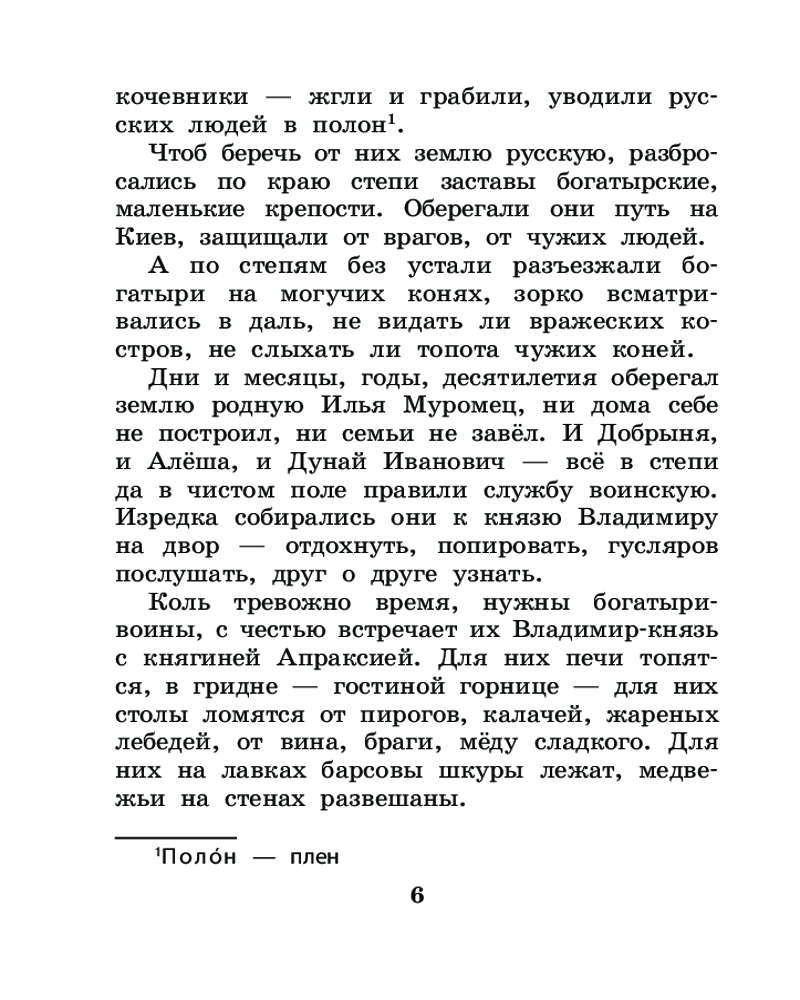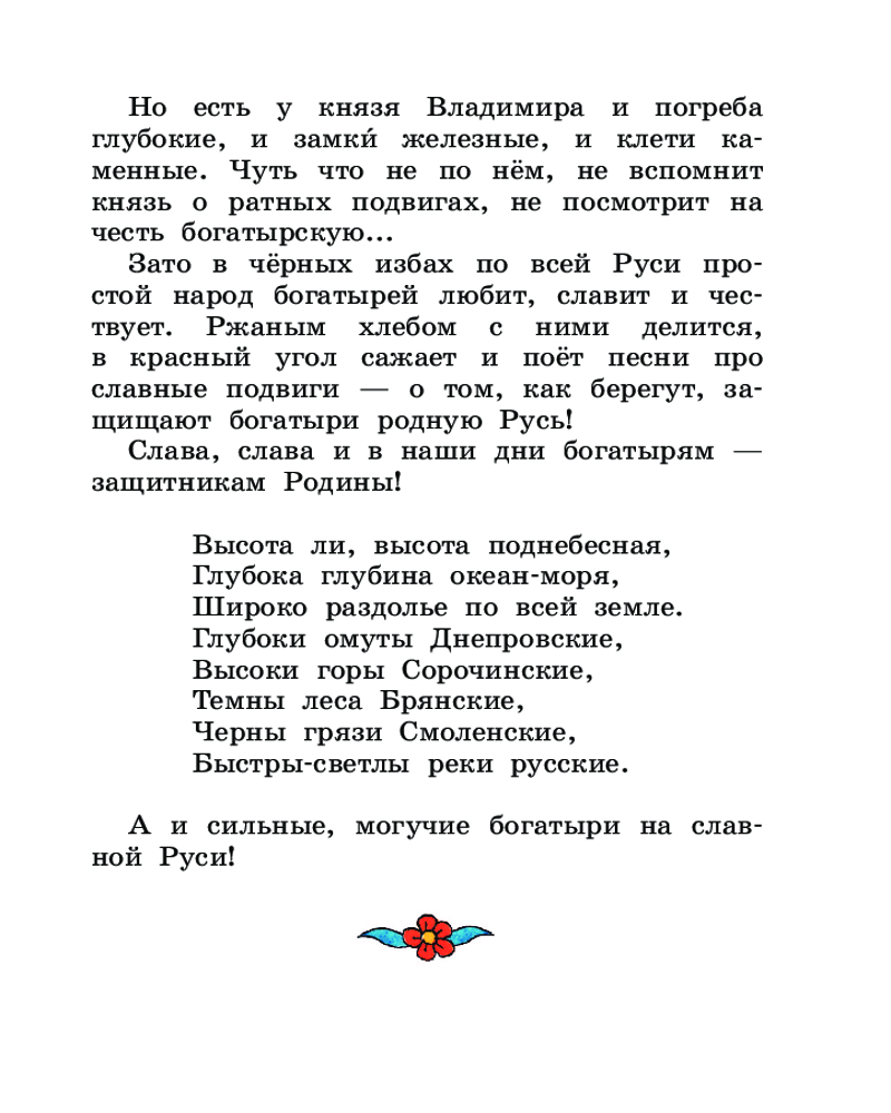 💳 Оплатить за товар можно при получении 🇰🇿 Есть бесплатная доставка по Казахстану 🎁 Копите бонусы с каждой покупки Серия: Лучшая детская книга В книгу вошли знаменитые былины о великих русских богатырях в пересказе известной фольклористки И.В. Карнауховой. Илья Муромец, Алёша Попович, Добрыня Никитич, Святогор-богатырь, Вольга Всеславьевич — об этих богатырях знает и стар и млад. Они очень сильны, за богатством не гонятся, на пирах животы не растят, а защищают русскую землю для чести и славы богатырской. Есть в этой книге и знаменитая былина о Василисе Микулишне — богатырше, которая хитростью вызволила своего мужа из заточения. Иллюстрации С. Бордюга и Н. Трепенок. |