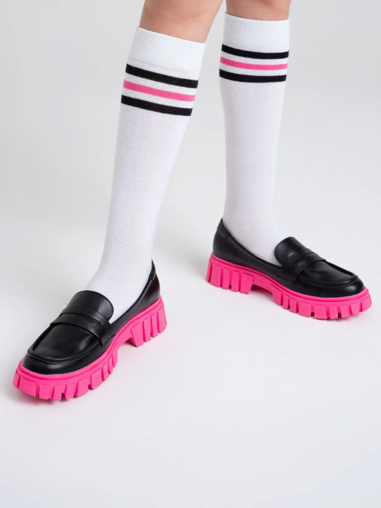 Модные лоферы для девочки подростка. Туфли из искусственной кожи. Подкладка — 100% натуральная кожа. Кожаная стелька с анатомическим элементом обеспечивает правильную нагрузку на стопу школьницы. Формоустойчивый задник поддерживает стопу в правильном положении. Подошва не скользит и устойчива к истиранию. Туфли для девочки школьницы отлично подойдут как сменка в школу и как обувь для прогулок: весна, лето. осень.
