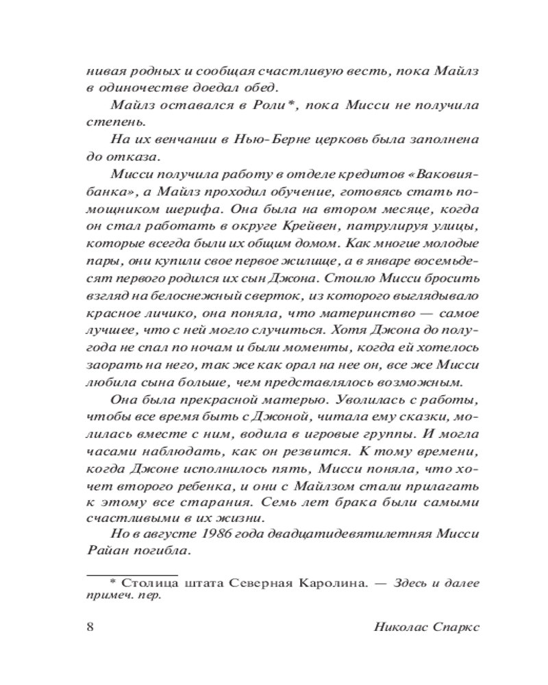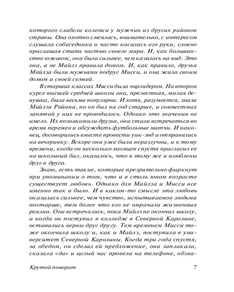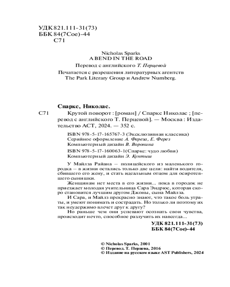 💳 Оплатить за товар можно при получении 🇰🇿 Есть бесплатная доставка по Казахстану от 1 дня 🎁 Копите бонусы с каждой покупки Серия: Эксклюзивная классика У Майлза Райана — полицейского из маленького городка — в жизни остались только две цели: найти водителя, сбившего его жену, и стать идеальным отцом для осиротевшего сынишки. Женщинам нет места в его жизни... пока в городок не приезжает молодая учительница Сара Эндрюс, которая скоро становится лучшим другом Джоны, сына Майлза. И Сара, и Майлз прекрасно знают, что такое боль утраты, и умеют понимать и сострадать. Но только ли поэтому их так неудержимо влечет друг к другу? Но раньше, чем они успевают осознать свои чувства, происходит нечто, способное разлучить их навсегда... |