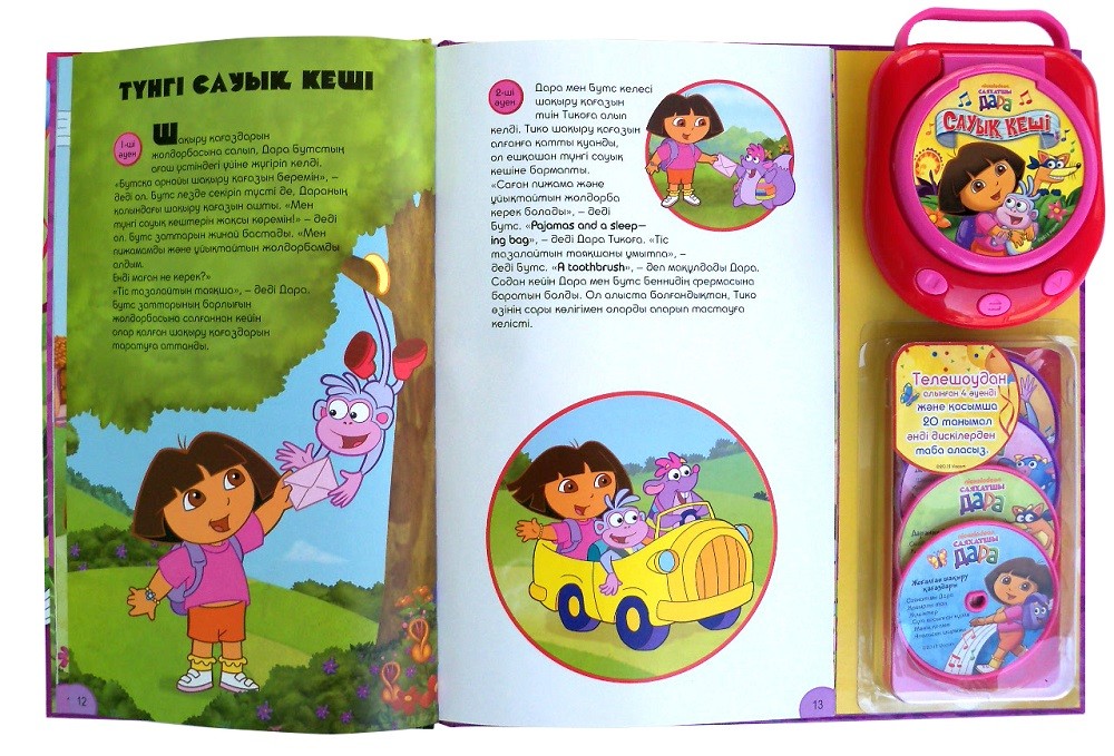 Очень понравилась книга и проигрыватель, минусовка из мультфильма, в книжке есть тексты песен на казахском и английском языках. Купила дочке, она в восторге с проигрывателем не расстается. Спасибо, Флип.