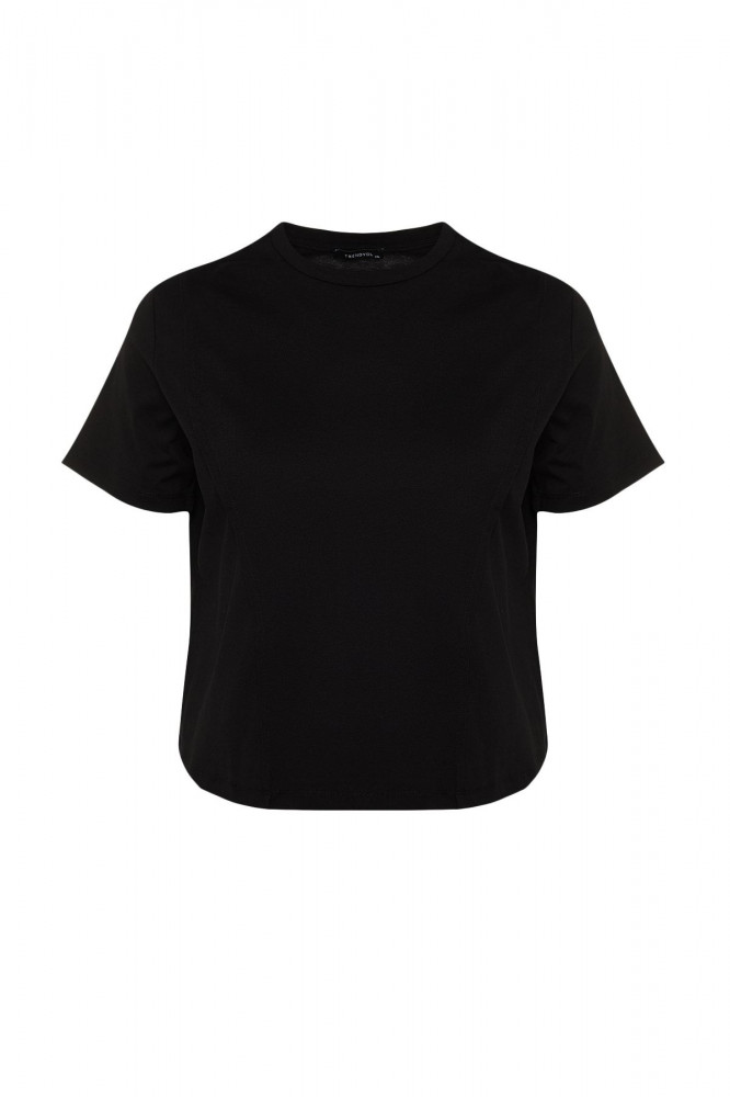 Приятный трикотаж для тела, чисто белая, фасон неплохой. Специально брала короткую под кардиган. Немного большемерит.