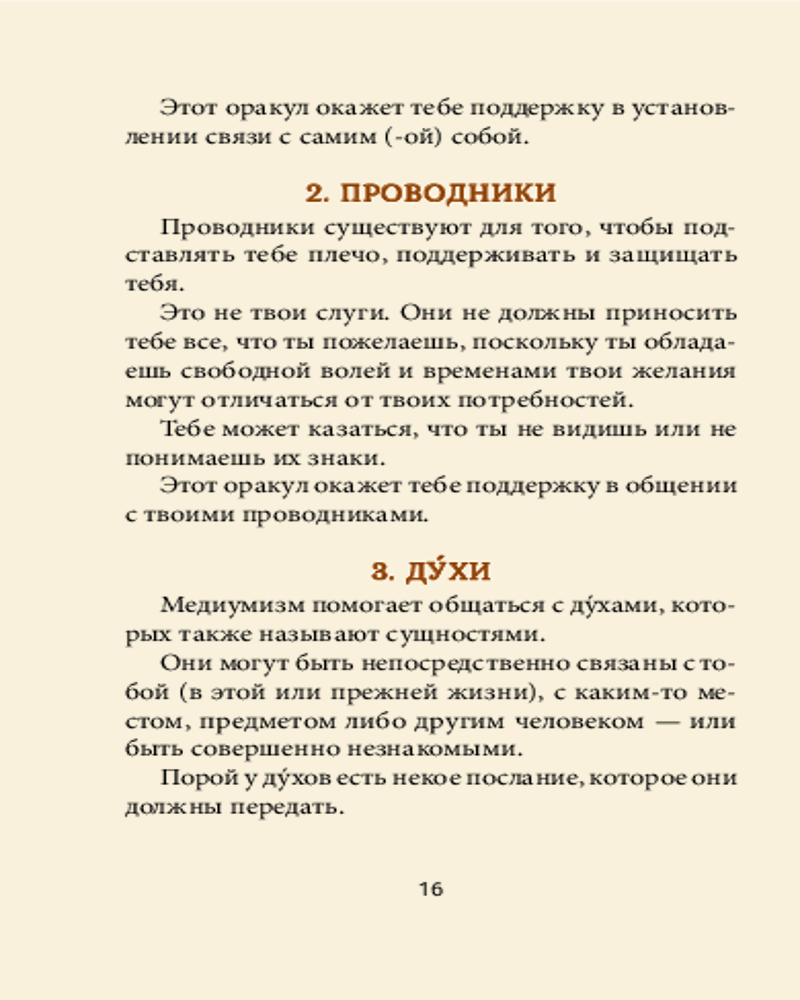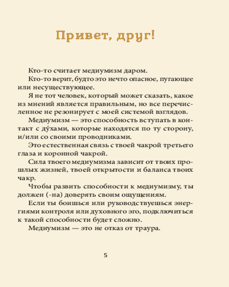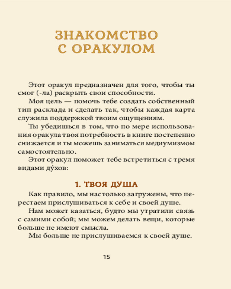 💳 Оплатить за товар можно при получении 🇰🇿 Есть бесплатная доставка по Казахстану от 1 дня 🎁 Копите бонусы с каждой покупки Серия: Эзотеризм. Парапсихология. Тайны Медиум — это человек, наделенный естественной способностью вступать в контакт со своими наставниками и духами, которые находятся «по ту сторону». С помощью этого набора вы сможете развить свои собственные интуитивные навыки и использовать карты как инструмент для связи с духами, у которых есть для вас важное послание. Благодаря магии, заключенной в изумительных иллюстрациях на картах, и книге-инструкции вы будете постепенно развивать свою силу как медиума, научитесь доверять своим ощущениям, получать вдохновляющие послания для своего духовного роста и интерпретировать их. |
