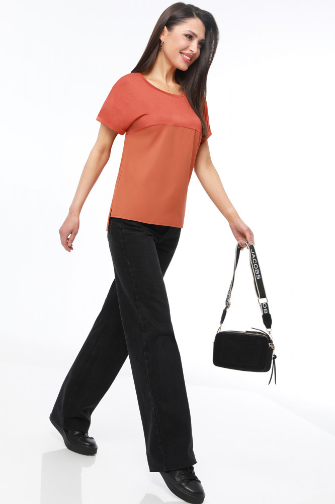В действительности блузка короче, чем на фото. При стирке подсела, стала ещё короче. Если была сантиметров на 20 длиннее, то выглядела бы нормально. Можно носить, как домашнюю футболку