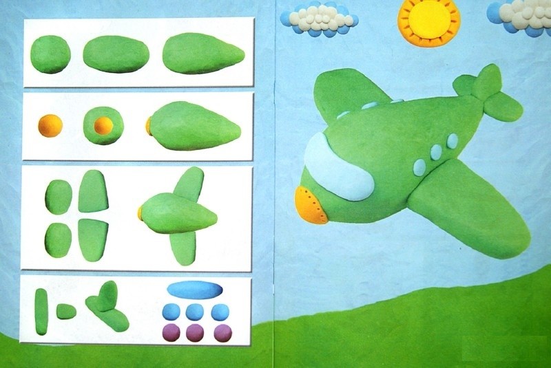 Книга тонкая - 10 страниц. Содержание в виде картинок. Иллюстрации яркие. Лепка каждого транспорта в виде больших, хороших фото. Единственно, в описании и в содержании есть танк, но в книге мы его не нашли.