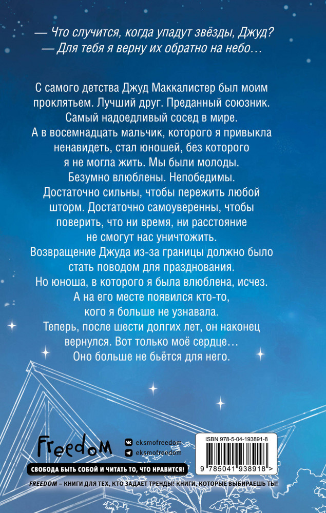 С самого детства Джуд Маккалистер был моим проклятьем. Лучший друг. Преданный союзник. Самый надоедливый сосед в мире. А в восемнадцать мальчик, которого я привыкла ненавидеть, стал юношей, без которого я не могла жить. Мы были молоды. Безумно влюблены. Непобедимы. Достаточно сильны, чтобы пережить любой шторм. Достаточно самоуверенны, чтобы поверить, что ни время, ни расстояние не смогут нас уничтожить. Возвращение Джуда из-за границы должно было стать поводом для празднования. Но юноша, в которого я была влюблена, исчез. А на его месте появился кто-то, кого я больше не узнавала. Теперь, после шести долгих лет, он наконец вернулся. Вот только мое сердце... оно больше не бьется для него.