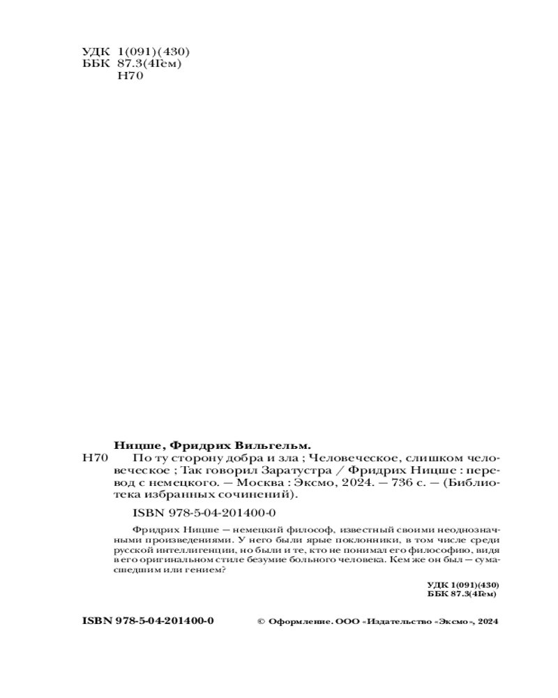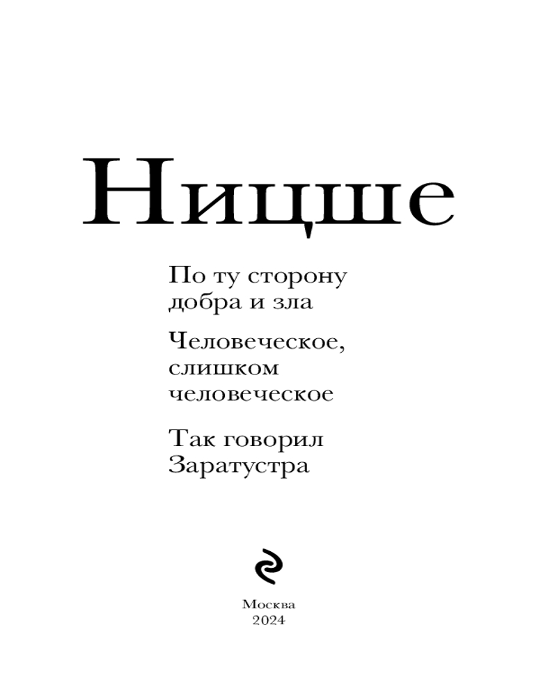 Фридрих Ницше. По ту сторону добра и зла, Человеческое слишком человеческое, Так говорил Заратустра-20% +124