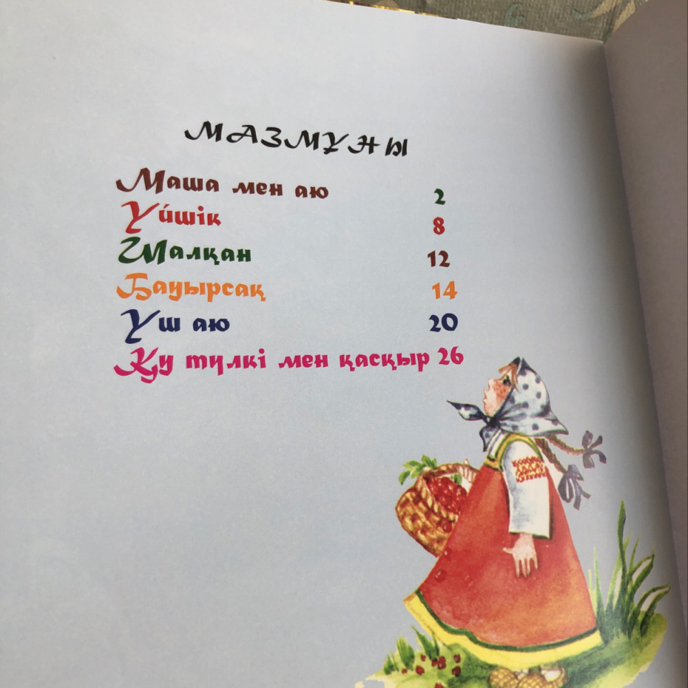 Именно в этой книжке несколько русских народных сказок: Теремок, Колобок, Репка, 3 медведя, Маша и Медведь, Лиса и Волк. Дети в восторге. Первоклашка читает сама, шрифты, иллюстрация, качество бумаги и перевод на высшем уровне. Спасибо Аруна и Флип!