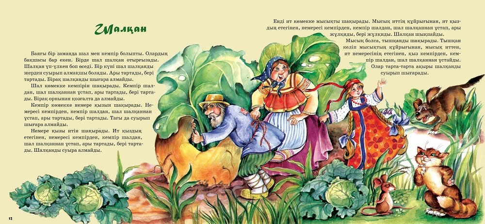 ШалқанВ данный момент этот товар отсутствует в продаже. Возможно, у нас найдется аналогичный или похожий товар здесь. Серия: Ертегілер елінде. В стране сказок Баяғы бір заманда шал мен кемпір болыпты. Олардың бақшасы бар екен. Бірде шал шалқан отырғызады. Шалқан үп-үлкен боп өседі. Бір күні шал шалқанды жерден суырып алмақшы болады. Ары тартады, бері тартады. Бірақ шалқанды шығара алмайды. |