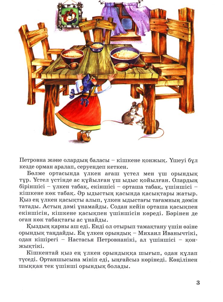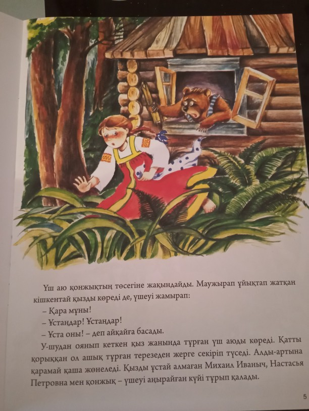 Заказала для дочки 5-ти лет, чтоб казахский язык осваивать. Очень довольна, большая, на каждой странице иллюстрации, в книжке не только " три медведя" сказка, но и ещё 4 сказки, что было неожиданно и очень кстати. Отличная книжка для малышей.