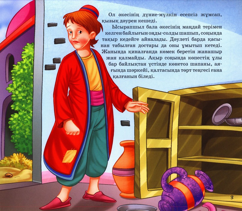 Ысырапшыл бала әкесінің маңдай терімен келген байлығын оңды-солды шашып, соңында тақыр кедейге айналады. Дәулеті барда қасынан табылған достары да оны ұмытып кетеді. Жанында қиналғанда көмек беретін жанашыр жан қалмайды. Ақыр соңында көпестің ұлы бар байлықтан үстінде көнетоз шапаны, аяғында шәркейі, қалтасында төрт теңгесі ғана қалғанын біледі.