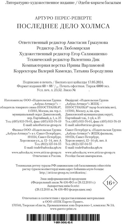 💳 Оплатить за товар можно при получении 🇰🇿 Есть бесплатная доставка по Казахстану от 1 дня 🎁 Копите бонусы с каждой покупки Серия: Большой роман В маленьком отеле на греческом острове летом 1960 года происходит убийство. Все постояльцы изолированы от внешнего мира штормом, и расследование предлагают вести... Шерлоку Холмсу. |