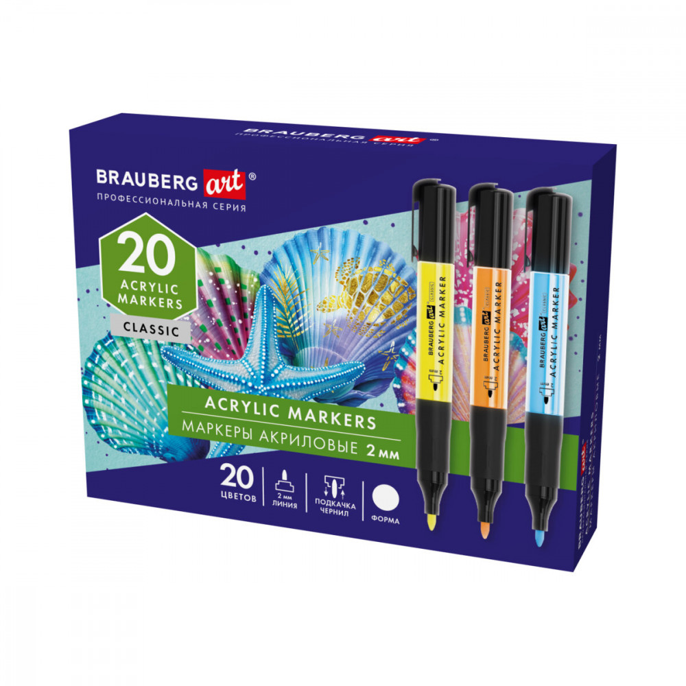 Набор акриловых маркеров BRAUBERG ART CLASSIC — это универсальный инструмент для письма, рисования и декорирования. Предназначены для использования на плотной бумаге, холсте, дереве, керамике, камне, стекле, коже.