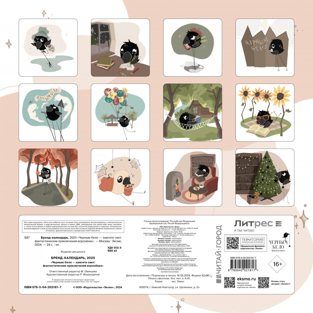 Бренд-календарь на 2025 год «Черным-бело — зажгите свет: фантастические приключения воронёнка»