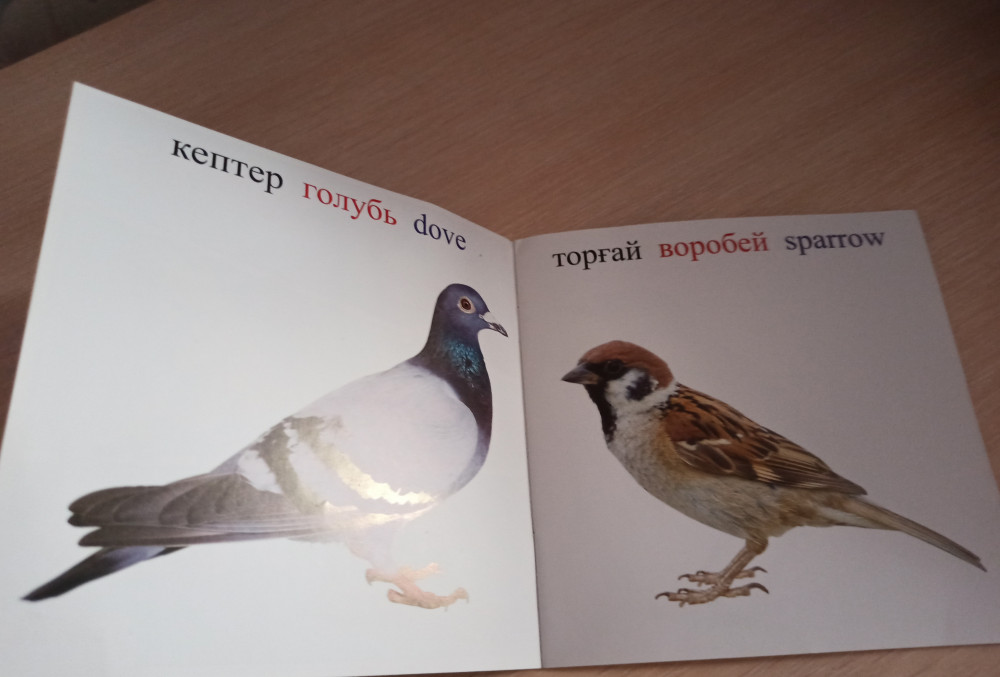 Құстар. Птицы. Birds+9 плотная бумага яркие картинки трёхъязычность мало слов